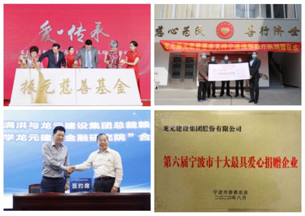 除了用自己的經(jīng)營舉措為家鄉(xiāng)添磚加瓦,龍元也踴躍參與到寧波地區(qū)的各項公益活動:除了去年向?qū)幉ù髮W(xué)捐資3600萬打造寧波大學(xué)龍元建筑金融研究院以外,自2007年起就設(shè)立的“龍元慈善濟困”慈善基金,14年來已累計捐贈基金善款700萬元,救助支出606.358萬元,使1100余人次困難群眾得到救助。2020年新冠疫情期間,龍元又用實際行動踐行愛心企業(yè)的家國情懷和責(zé)任擔(dān)當(dāng),捐贈639.2萬元用于援鄂醫(yī)療醫(yī)護人員,其中260萬元捐贈給寧波、象山援鄂醫(yī)護人員。